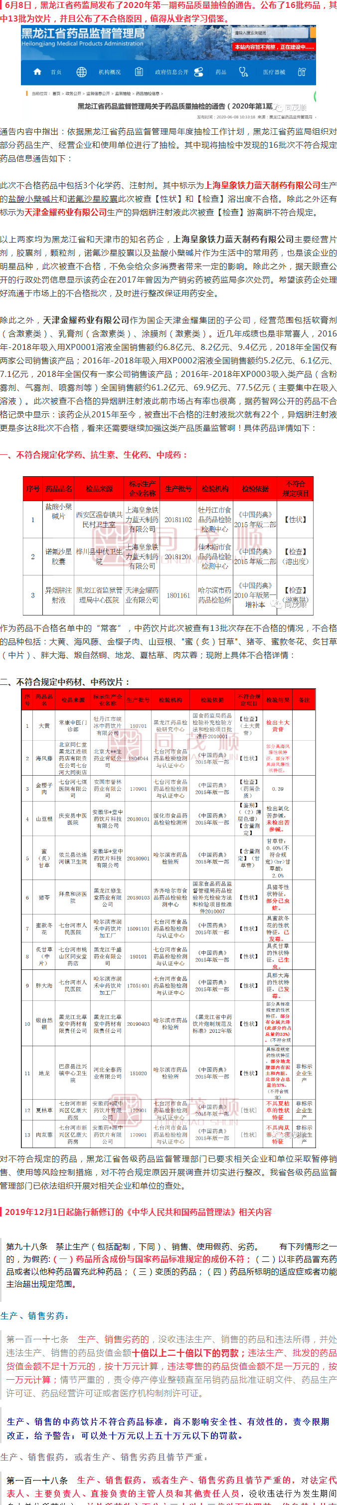 16批藥品(13批飲片)不合格,公布不合格原因,值得學(xué)習(xí)!